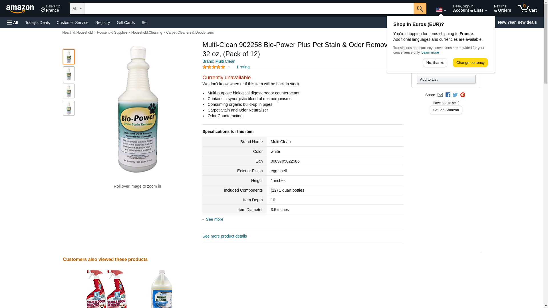 Multi-Clean 902258 Bio-Power Plus Pet Stain & Odor Remover, 32 oz, (Pack of 12)