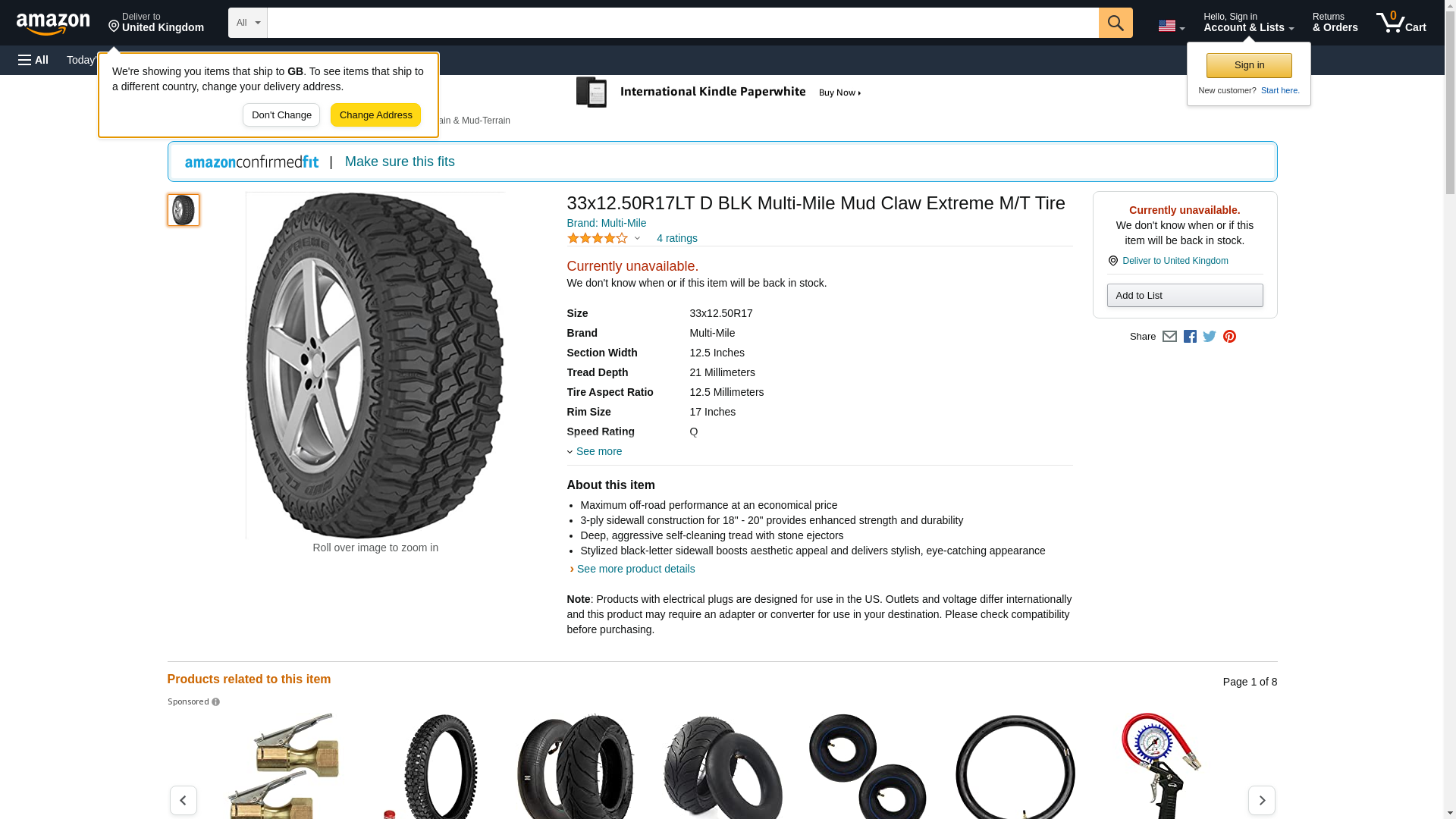 33x12.50R17LT D BLK Multi-Mile Mud Claw Extreme M/T Tire 3312.5017 33 12.50 17