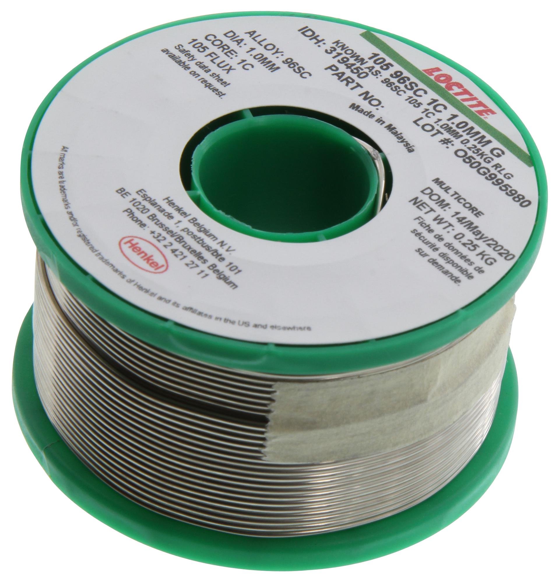 - Price For: Each External Diameter - Metric: 1mm External Diameter - Imperial: 0.039" Solder Alloy: 95.5, 3.5, 0.7 Sn, Ag, Cu Melting Temperature: 217°C RoHS Compliant: Yes