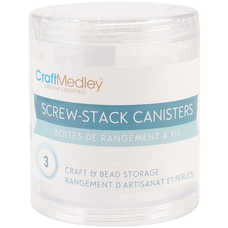 <p><br /><strong>Bead Storage Screw Stack Canisters, 2.75" x 1", 3/Pkg:</strong></p> <ul> <li>A single lid is included for the uppermost container</li> <li>Each jar has a diameter of 2.75", a depth of 1" and will hold approximately 1.5oz</li> <li>Includes 3 empty containers and 1 lid</li> </ul>
