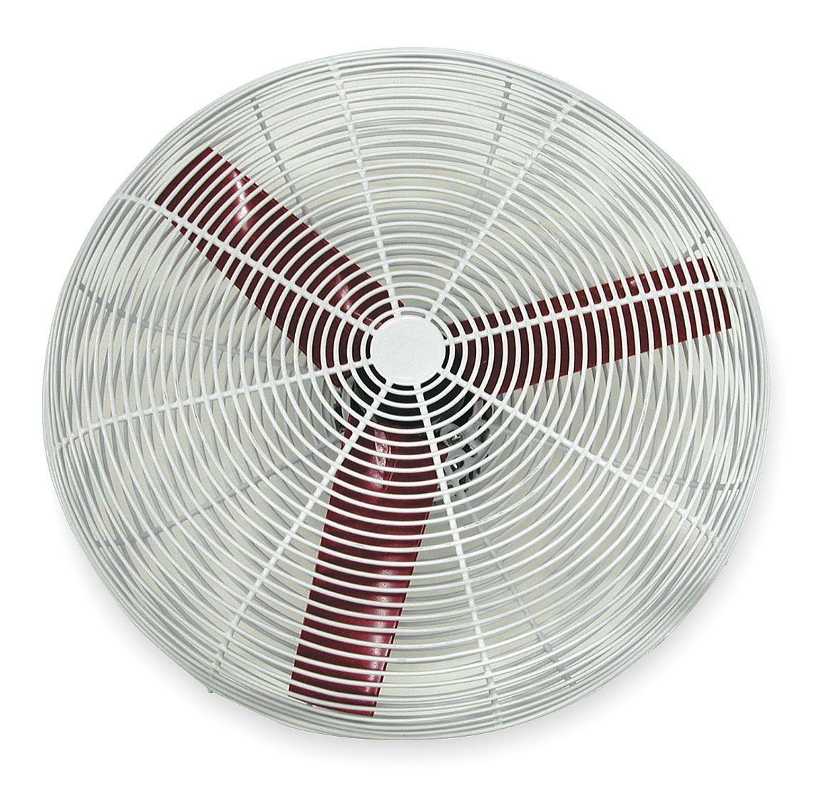 'Corrosion Resistant Air Circulator, Blade Dia. 24 In., Stationary, Non-Oscillating, 1 Speeds, Voltage 240, 1 Phase, CFM High 8000, Motor HP 1/3, Motor RPM 1750, Operating Amps 2, Fan Mounting Location Ceiling, Wall, Fan Style Corrosion Resistant, Sound Level 55dBA, Max. Ambient Temp. 140 Degrees F, Hz 60, Watts 480, Motor Type Permanent Split Capacitor, Drive Type Direct, Outside Dia. 27 In., Height 27 In., Width 27 In., Max. Depth 14 In.'