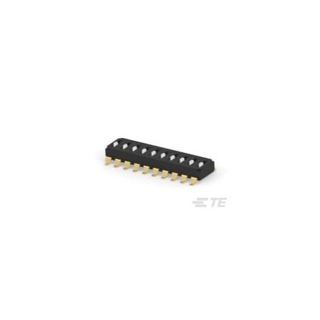Slide Dip Switch, 10 Switches, Spst, 0.025A, 24Vdc, Wire Terminal, Panel Mount