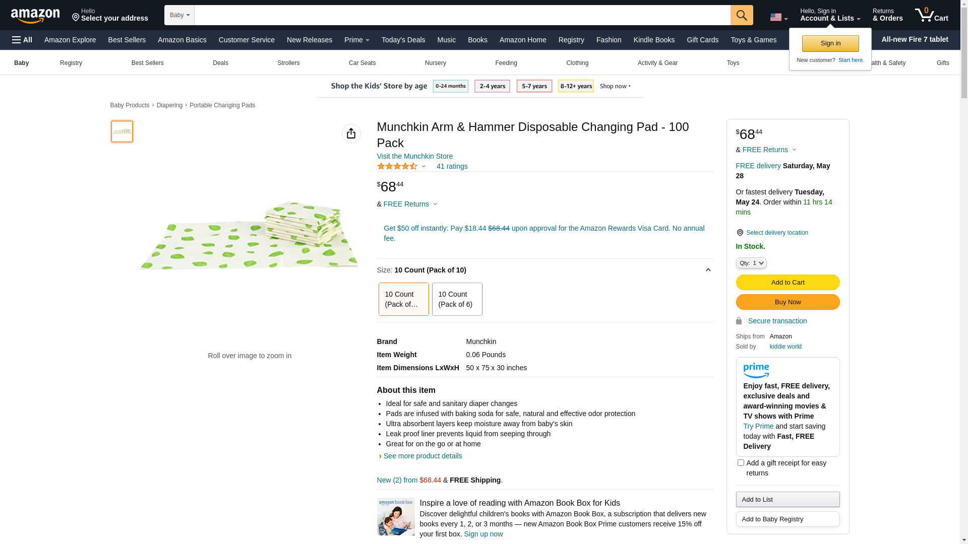 Munchkin Arm and Hammer Disposable Changing Pad, 10 Count: Maxedbuy.com
