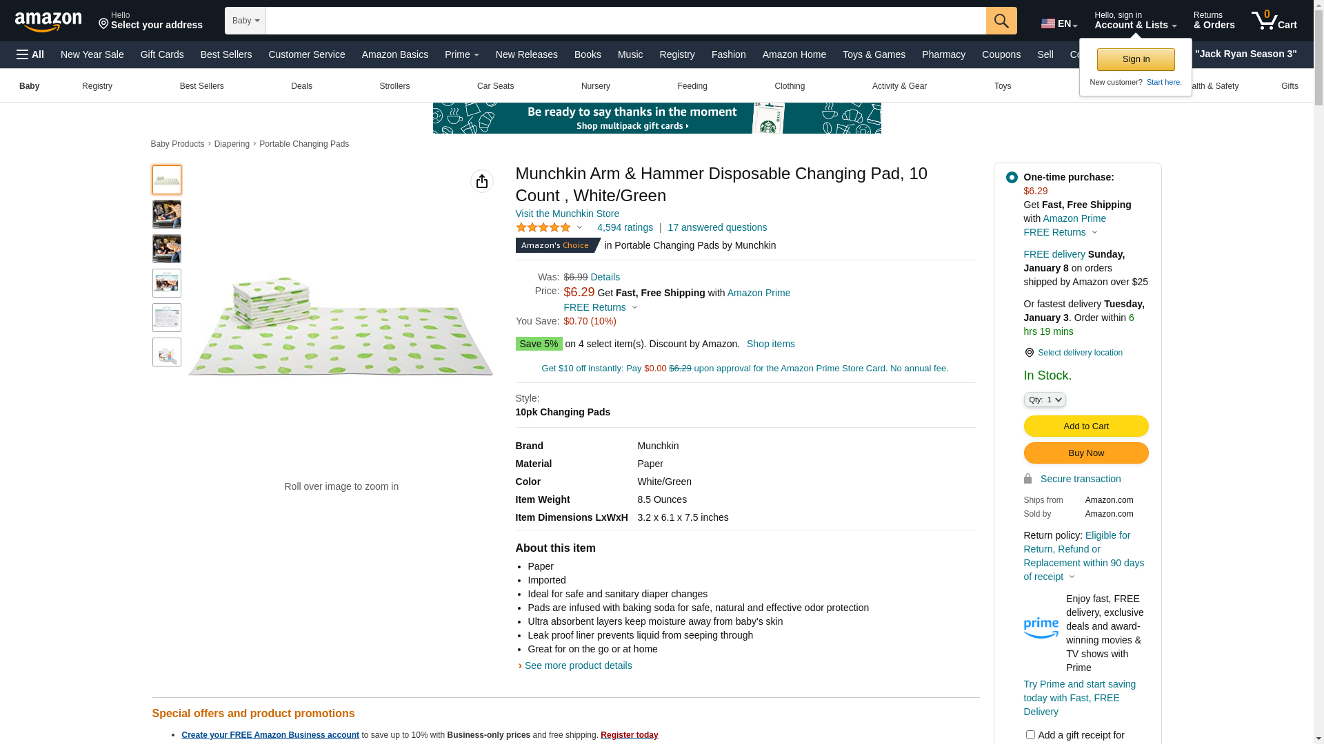 Munchkin® Arm & Hammer Disposable Changing Pad, 10 Count , White/Green