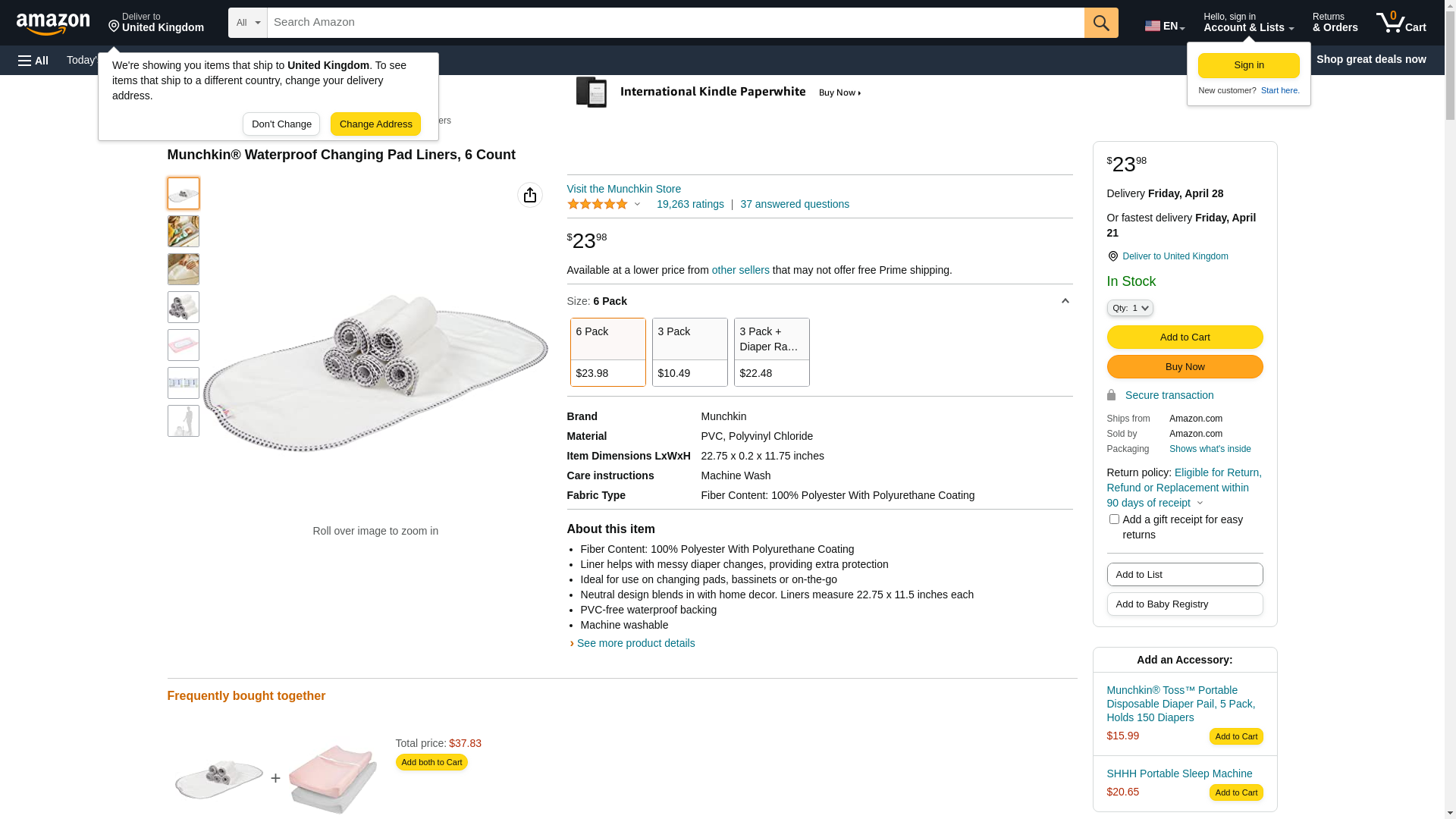 Munchkin® Waterproof Changing Pad Liners, 6 Count