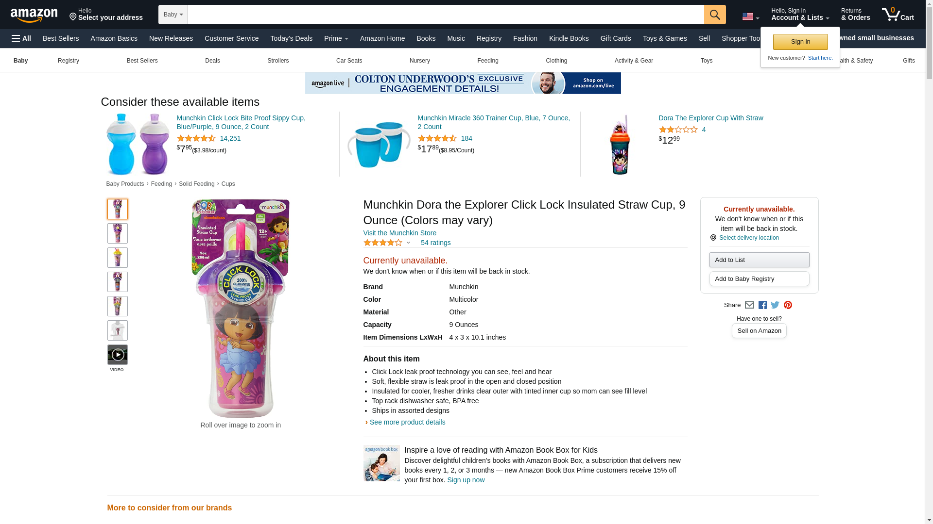 Quality You Can Trust From Munchkin. Munchkin 9 Oz. Dora The Explorer Click Lock Insulated Straw Cup - Colors May Vary. Great Value!.