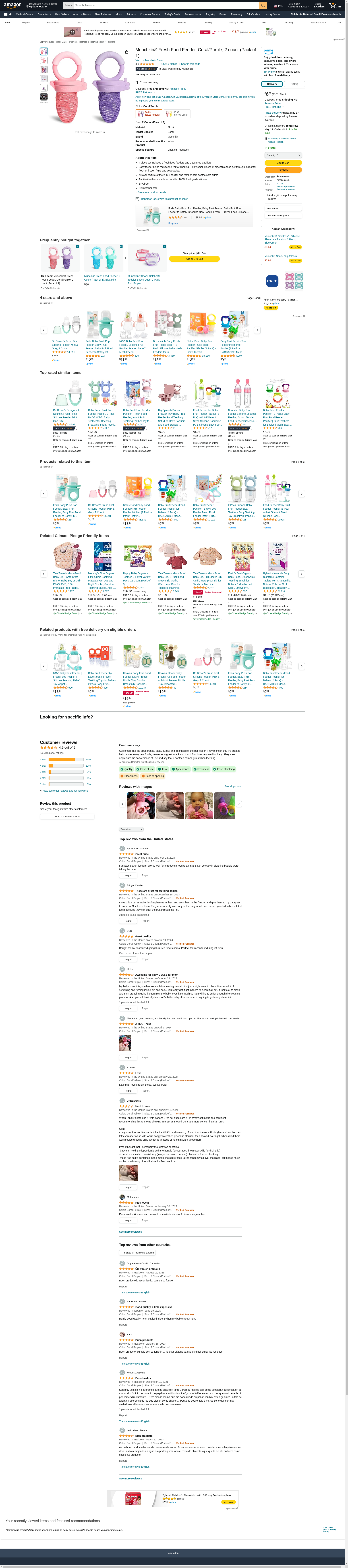 Munchkin® Fresh Food Feeder, Coral/Purple, 2 count (Pack of 1)