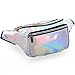 Holographic Fanny Pack for Women Men, Water Resistant Crossbody Waist Bag Pack with Multi-Pockets Adjustable Belts, Cute Bum Belt Bag for Travel Walking Running Hiking Cycling (Holographic Silver)