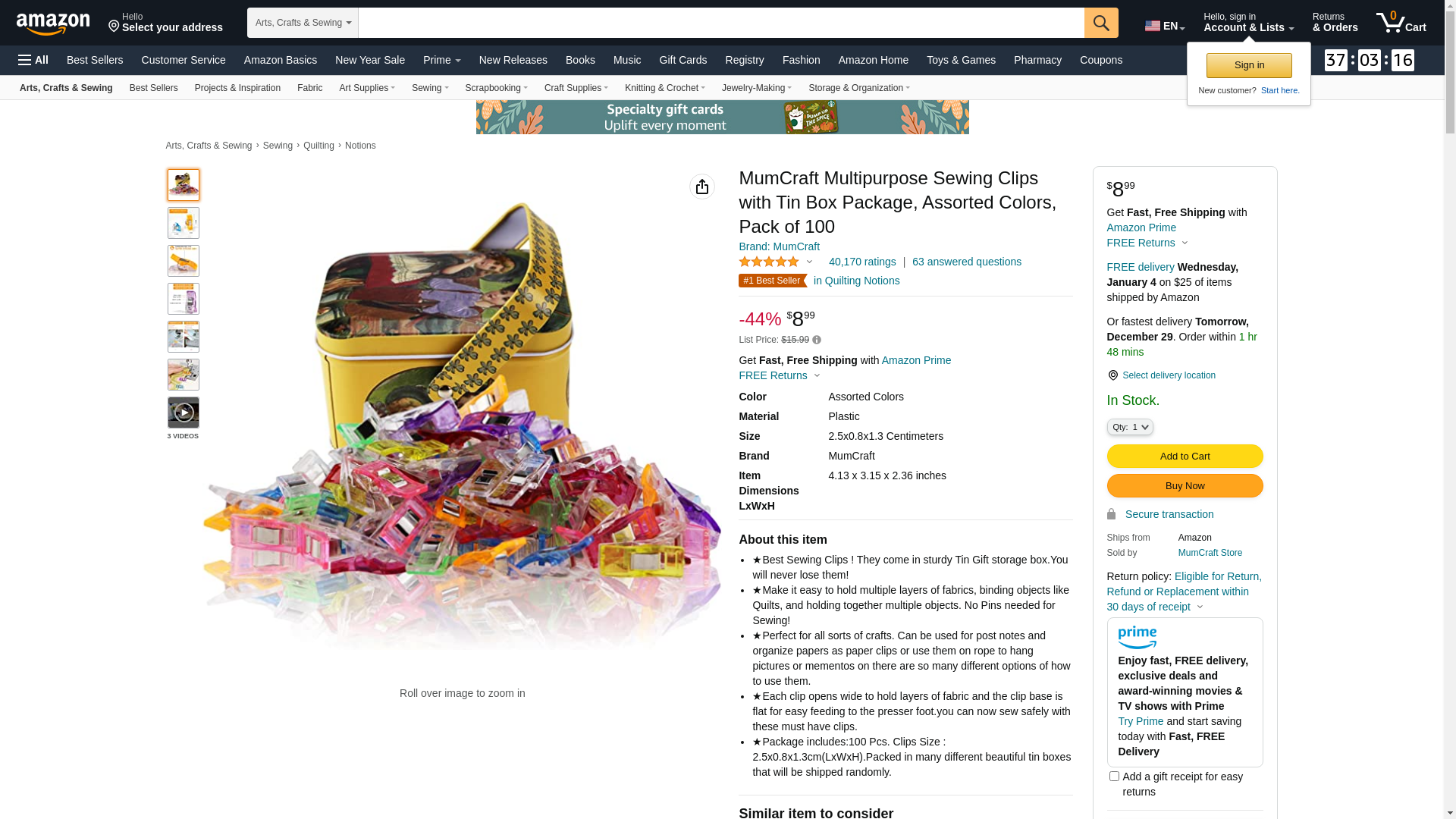 MumCraft Multipurpose Sewing Clips with Tin Box Package, Assorted Colors, Pack of 100: Maxedbuy.com