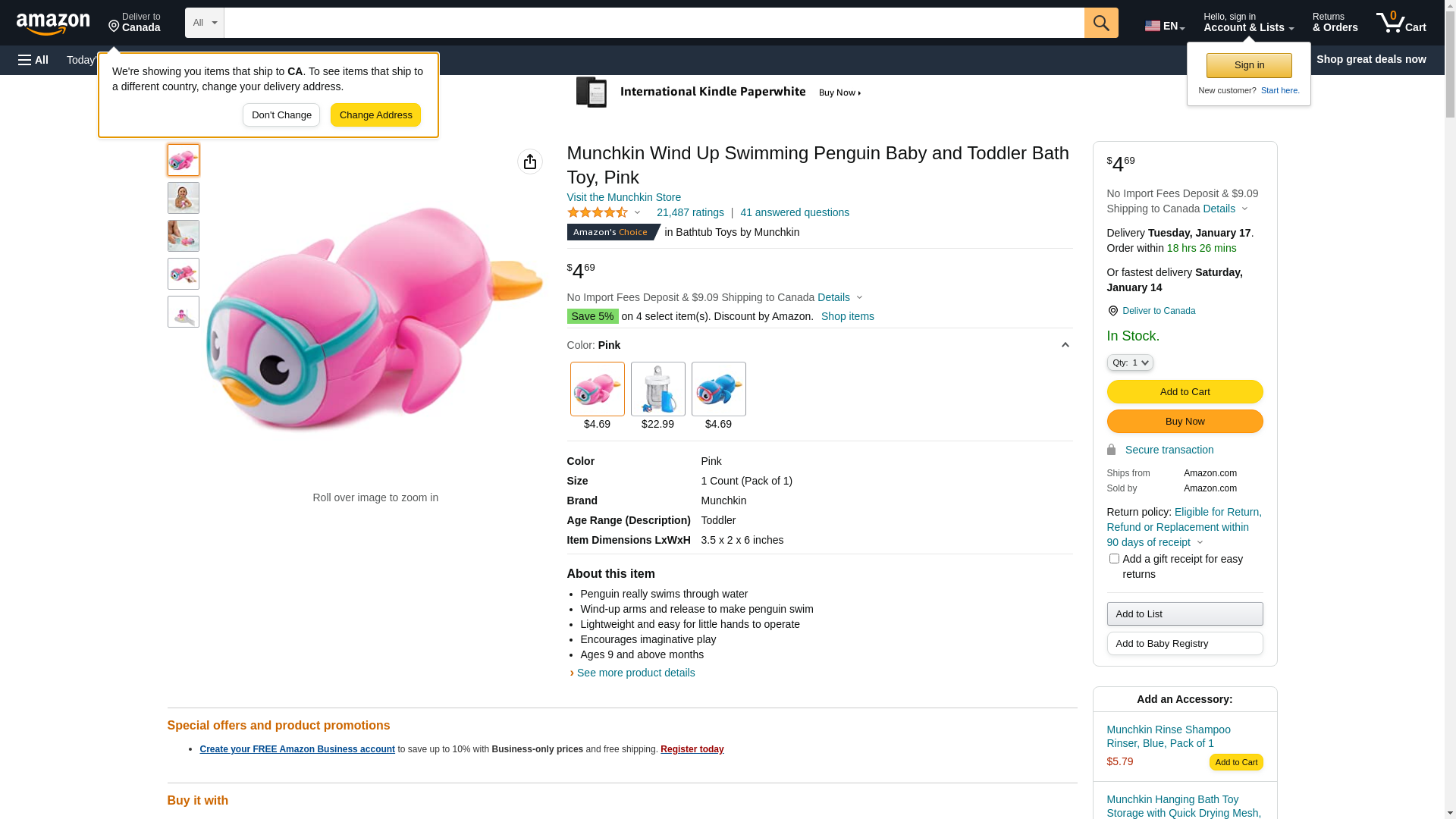 Munchkin® Wind Up Swimming Penguin Baby and Toddler Bath Toy, Pink