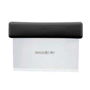 Mundial 5600 series dough cutter 6 in. X 3 in. Food service grade stainless steel blade; excellent for cutting into the stickly texture of dough and dividing dough into portions; the polypropylene handle is ergonomically designed to provide a secure non-slip grip. Handle available in black and white; lifetime limited warranty.