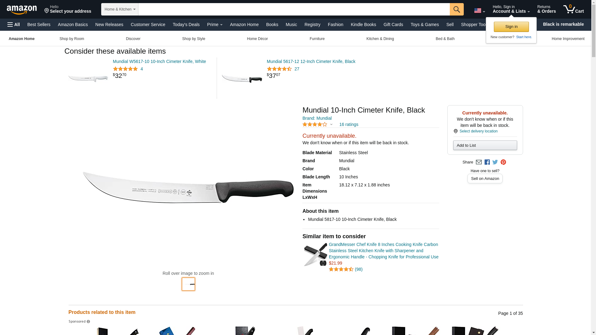 Mundial 10-Inch Cimeter Knife, Black