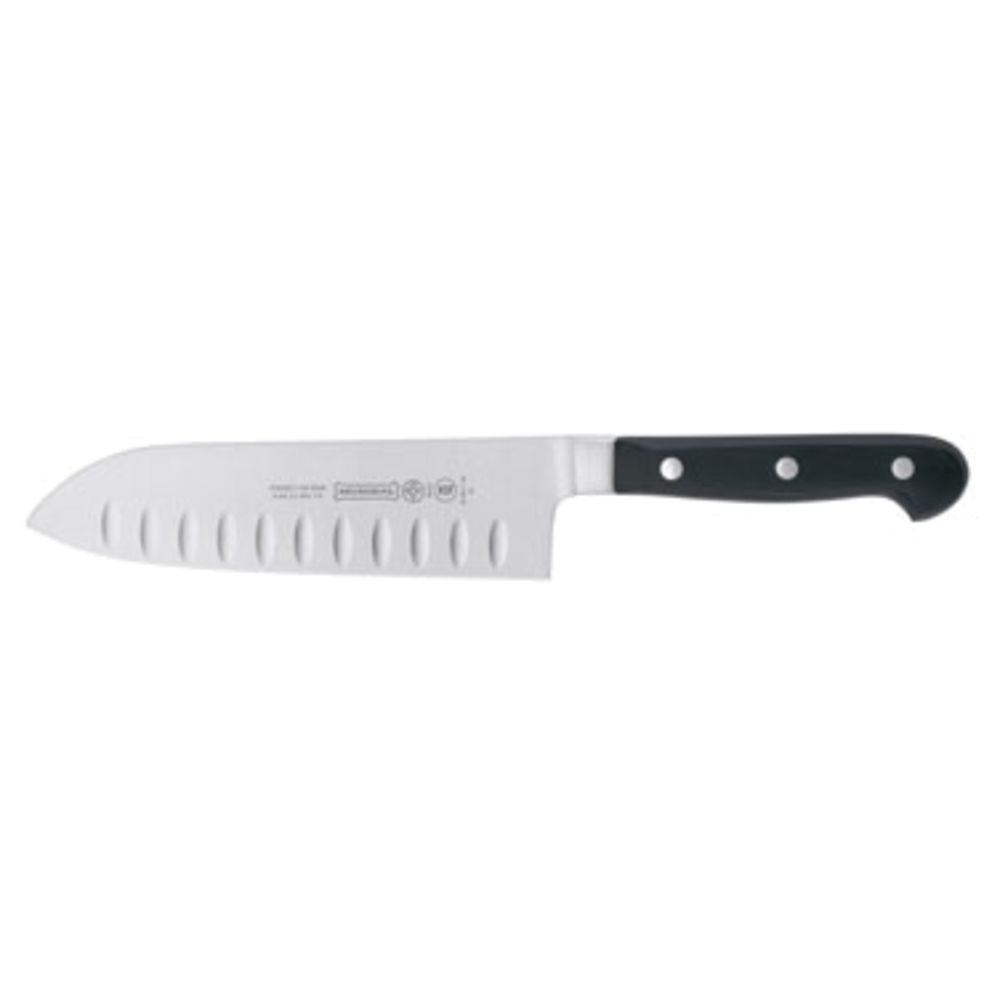 Mundial 5100 Series 7-Inch Granton Edge Santoku Knife with Black Handle, Ideal Knife for Meat and Vegetables, Precise Cuts for Julienning Thin Slices