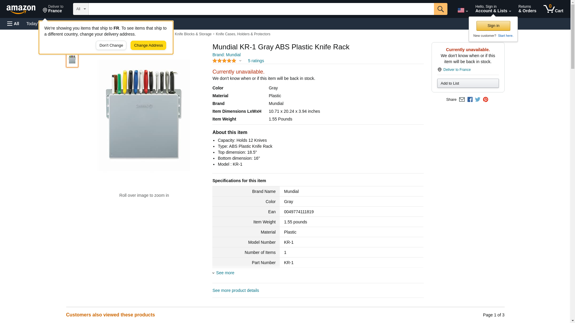 Mundial KR-1 Gray ABS Plastic Knife Rack