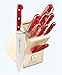 | Feature | "2-1/2-inch peeling, 3-1/2-inch paring, 6-inch serrated utility, 8-inch chef's, 8-inch bread, and 8-inch carving knife and fork" |