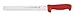 Mundial 5600 series slicing knife 10 in. High carbon stainless steel serrated blade with red handle, used for slicing meats; the polypropylene handle is ergonomically designed to provide a secure non-slip grip. Handle is red. Lifetime limited warranty.