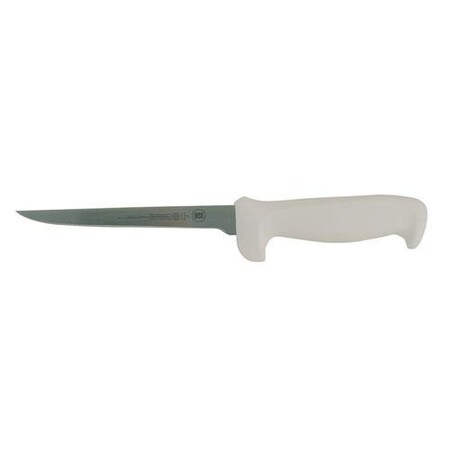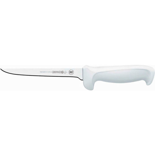 Great for prepping large pieces into smaller useable cuts, the Mundial Knives W5614-6 Boning Knife will make quick work of your cutlery tasks. Made for use with fish and chicken, the Mundial Knives W5614-6 Boning Knife has a 6 inch, high carbon stainless steel blade with a stiff, narrow flexible design product protection. The Mundial Knives W5614-6 Boning Knife is crafted with an white, ergonomic handle that is matched to the blade to ensure perfect balance and provides a secure nonslip grip even when wet. Make deboning cuts of meat fast and easy with this Mundial Knives W5614-6 Boning Knife is ideal for butchers, chefs, and home cooking enthusiasts alike.