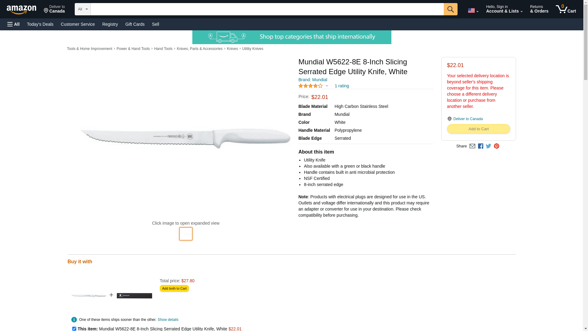 Mundial W5622-8E 8-Inch Slicing Serrated Edge Utility Knife, White