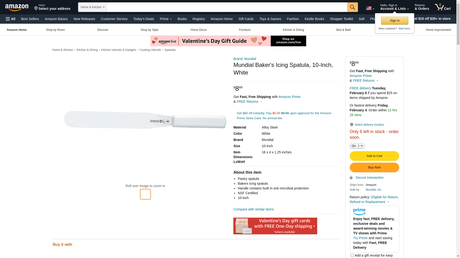 Mundial 5600 series icing spatula 10 in, food service grade stainless steel blade. Primary purpose is to apply icings, frostings and buttercreams. The polypropylene handle is ergonomically designed to provide a secure non-slip grip. Handle is offered in multi color options. Lifetime limited warranty.