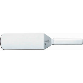 The Mundial 8" x 3" turner with white polypropylene handle is a high-quality kitchen tool designed for flipping and transferring food with ease. The turner features a wide, flat blade made of durable stainless steel that can handle heavy foods without bending or warping. The blade is also flexible enough to easily slide under delicate items like fish fillets or omelets. The handle of the turner is made from white polypropylene, which is a tough, heat-resistant material that provides a comfortable grip and is easy to clean. Measuring 8 inches in length and 3 inches in width, this turner is the perfect size for handling a variety of foods. Whether you're flipping burgers on the grill or transferring cookies from a baking sheet, the Mundial turner makes it easy to get the job done quickly and efficiently. Overall, the Mundial 8" x 3" turner with white polypropylene handle is a must-have tool for any home cook or professional chef looking for a reliable and durable turner that can handle a variety of tasks in the kitchen.