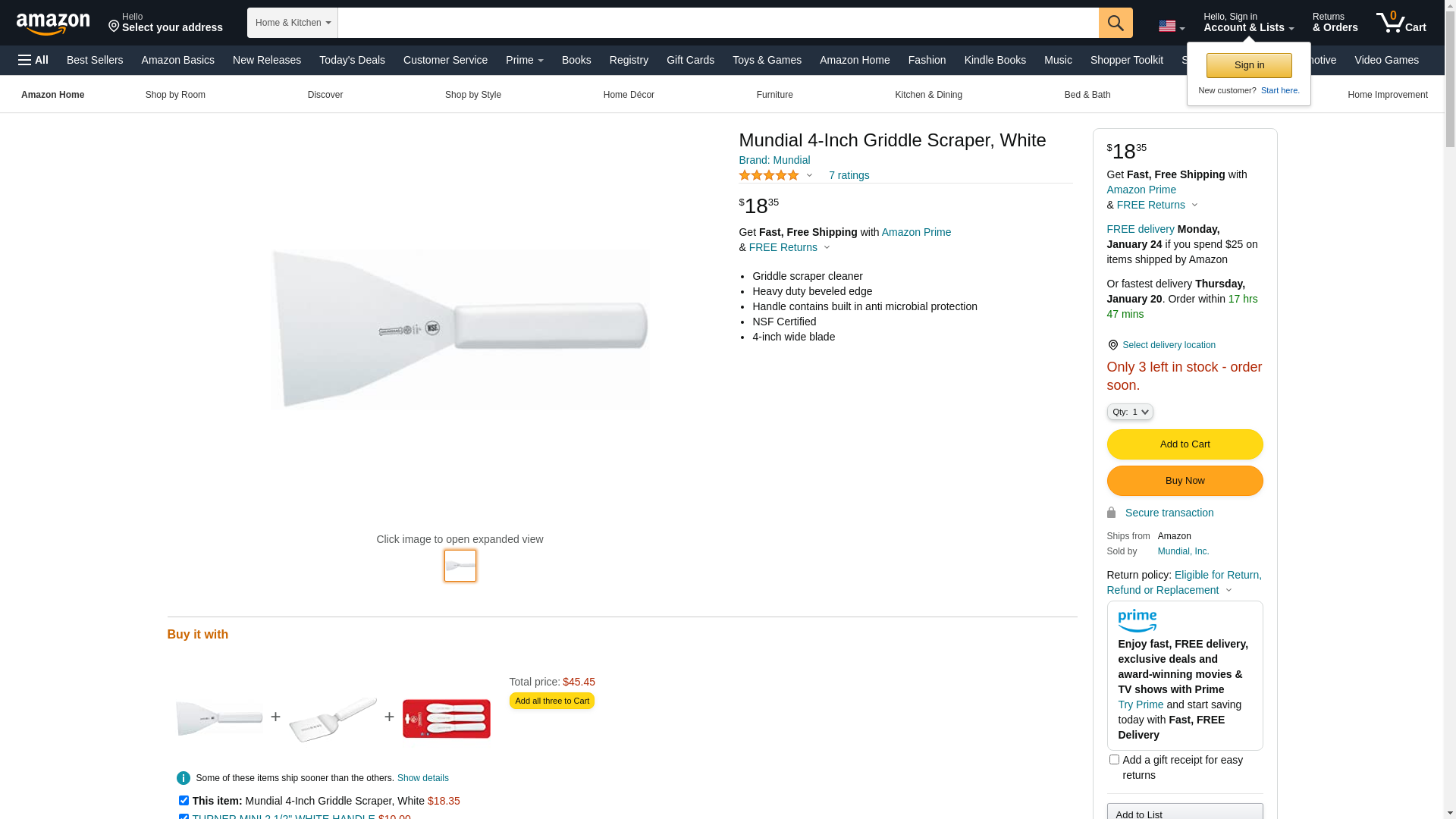 Mundial 5600 series griddle scrapper 4 in food service grade stainless steel blade. Best tool for removing food and oil left behind from cooking on flat top grills or cooking surfaces. The polypropylene handle is ergonomically designed to provide a secure non-slip grip. Handle is also offered in black. Lifetime limited warranty.