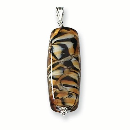 Sterling Silver Oblong Tiger Murano Glass Pendant
