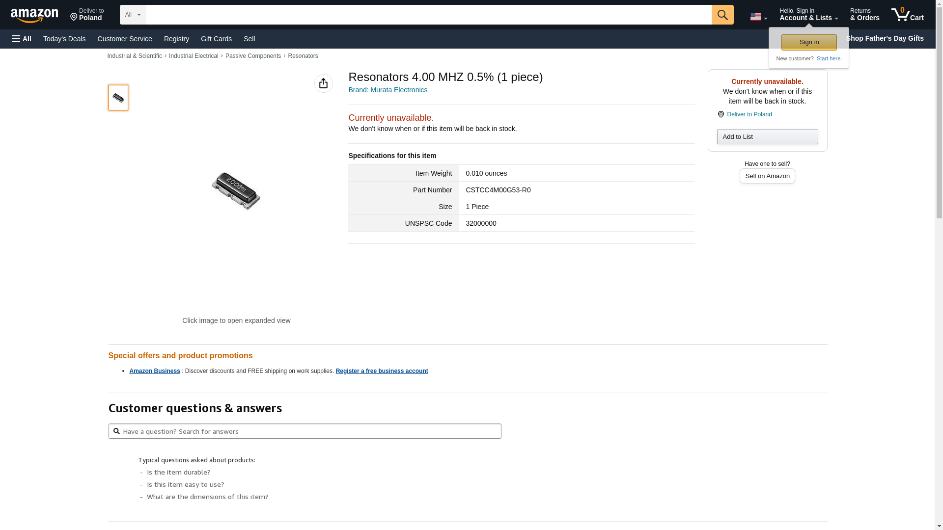 Resonators 4.00 MHZ 0.5% (1000 pieces)