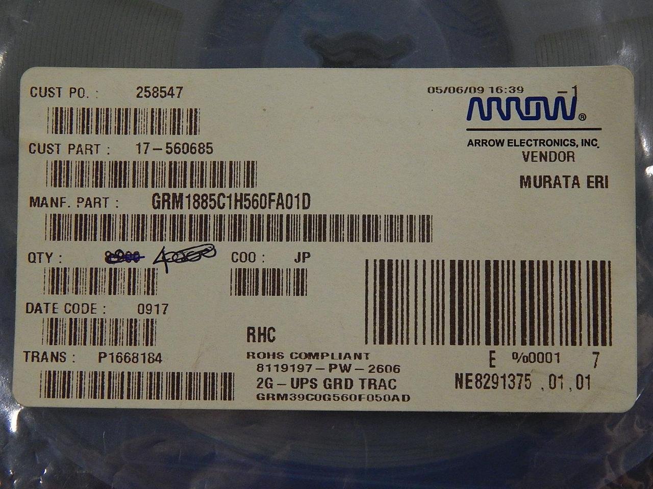 Multilayer Ceramic Capacitors MLCC - SMD/SMT 0603 56 pF 50 volts C0G 1 %