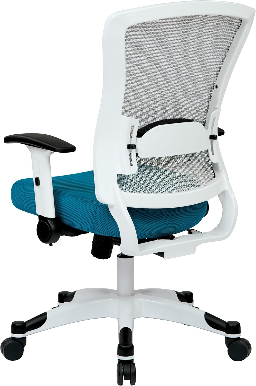 Office Star SPACE 317W-W1C1F2W White Breathable Mesh Chair with Padded Mesh Seat, pneumatic seat height adjustment, deluxe 2-to-1 synchro tilt and tilt tension control with height adjustable padded 2-way flip arms.