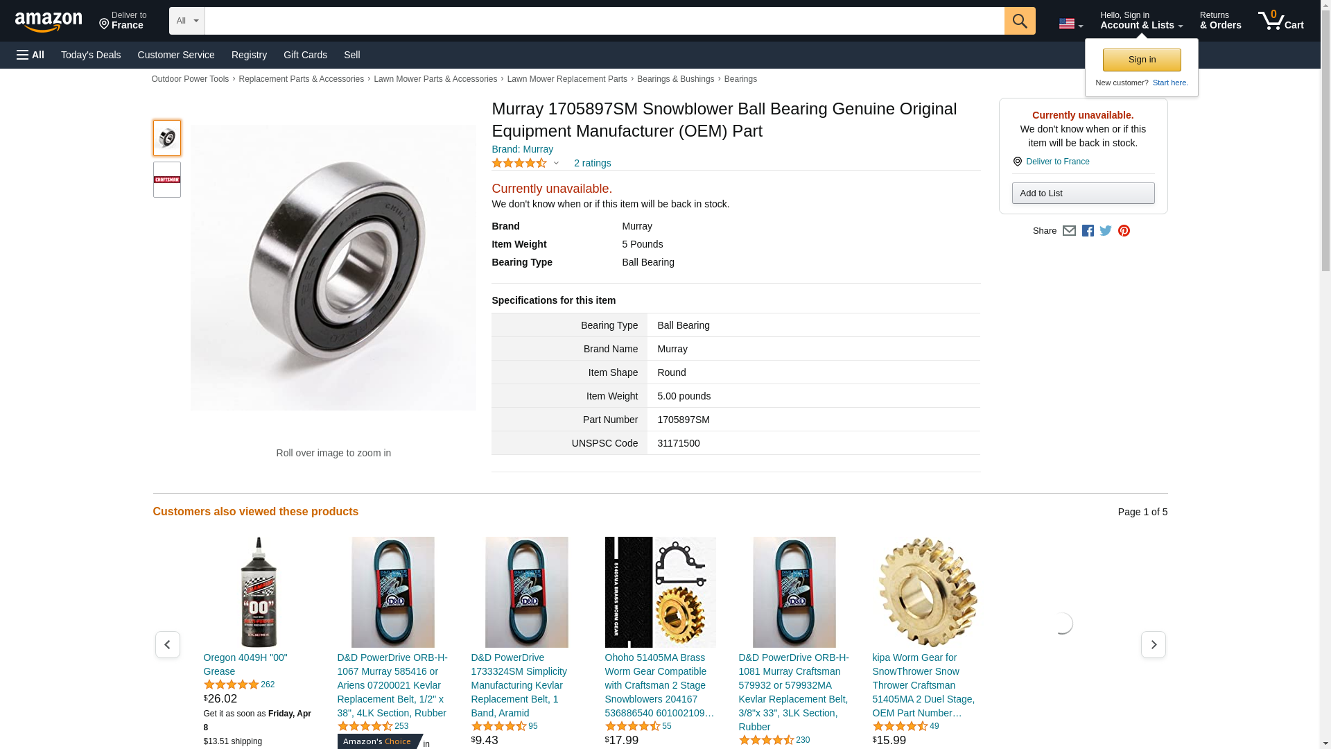Murray 1705897SM Snowblower Ball Bearing Genuine Original Equipment Manufacturer (OEM) Part