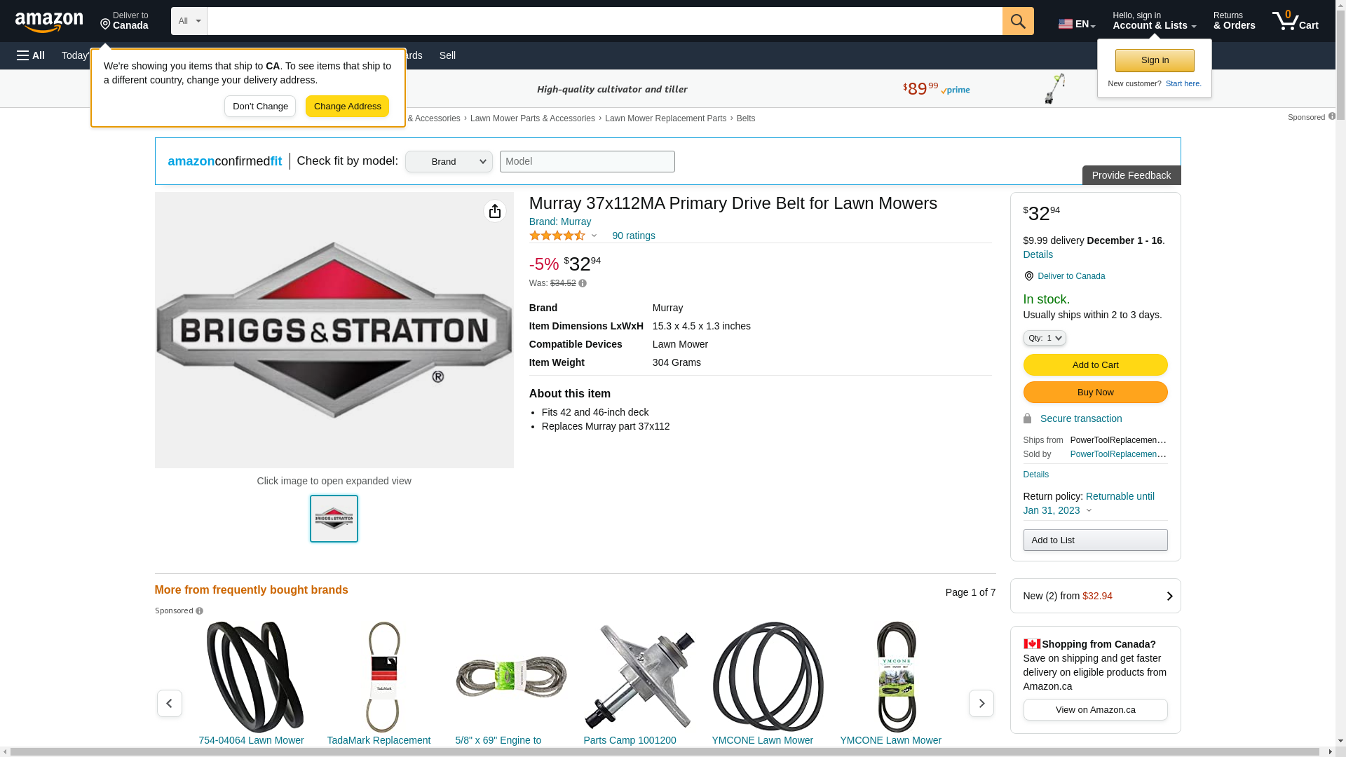 - Replaces Murray part 37x112