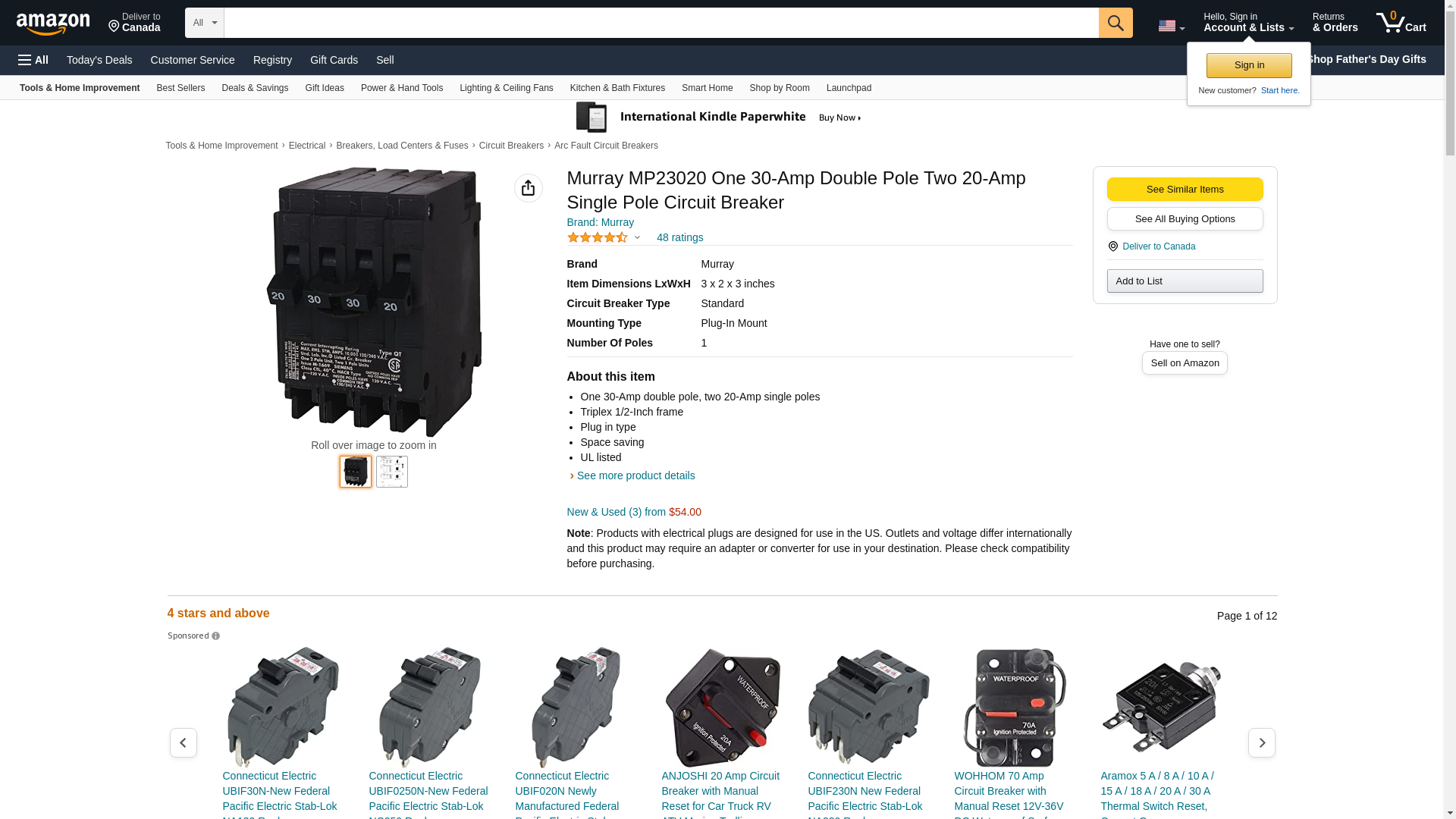 Murray MP23020 One 30-Amp Double Pole Two 20-Amp Single Pole Circuit Breaker. One 30-Amp double pole, two 20-Amp sing...