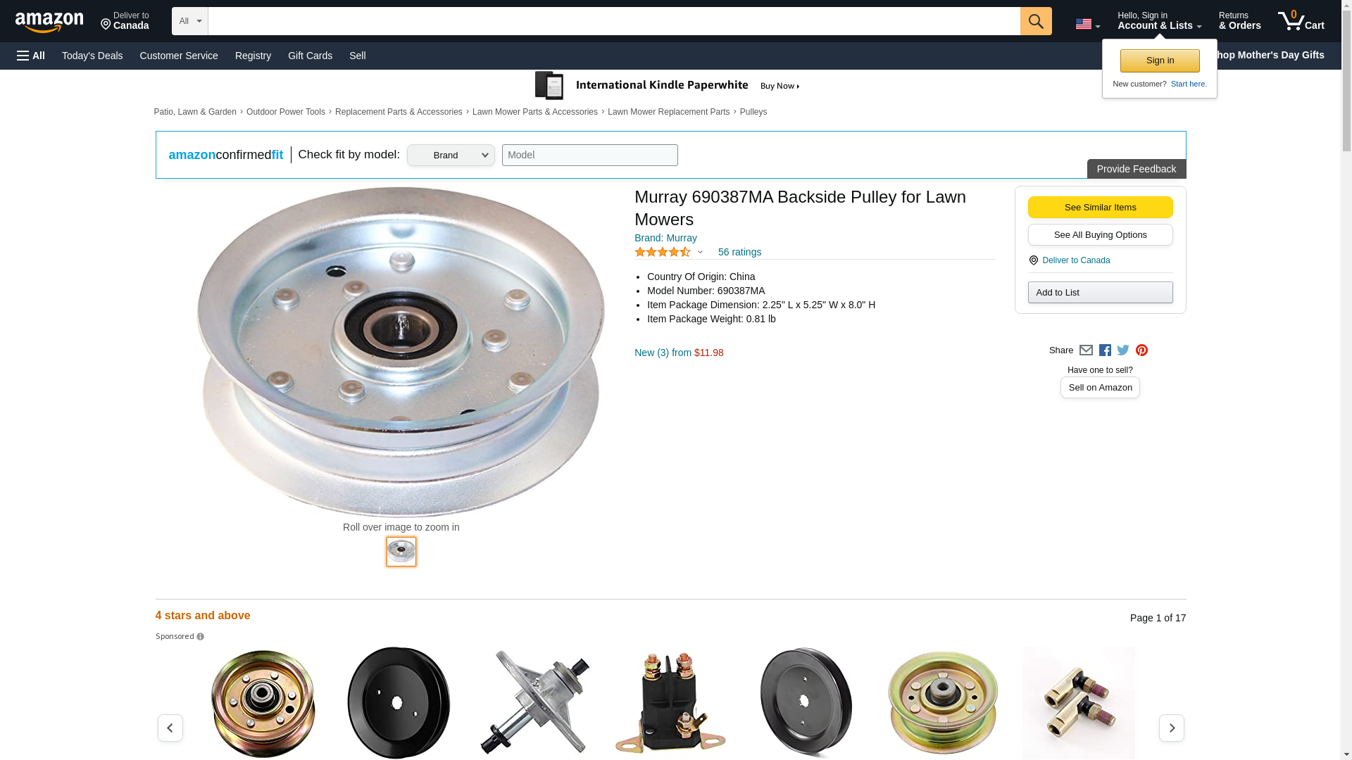 B & S 690387 Murray MA Backside Pulley for Lawn Mowers