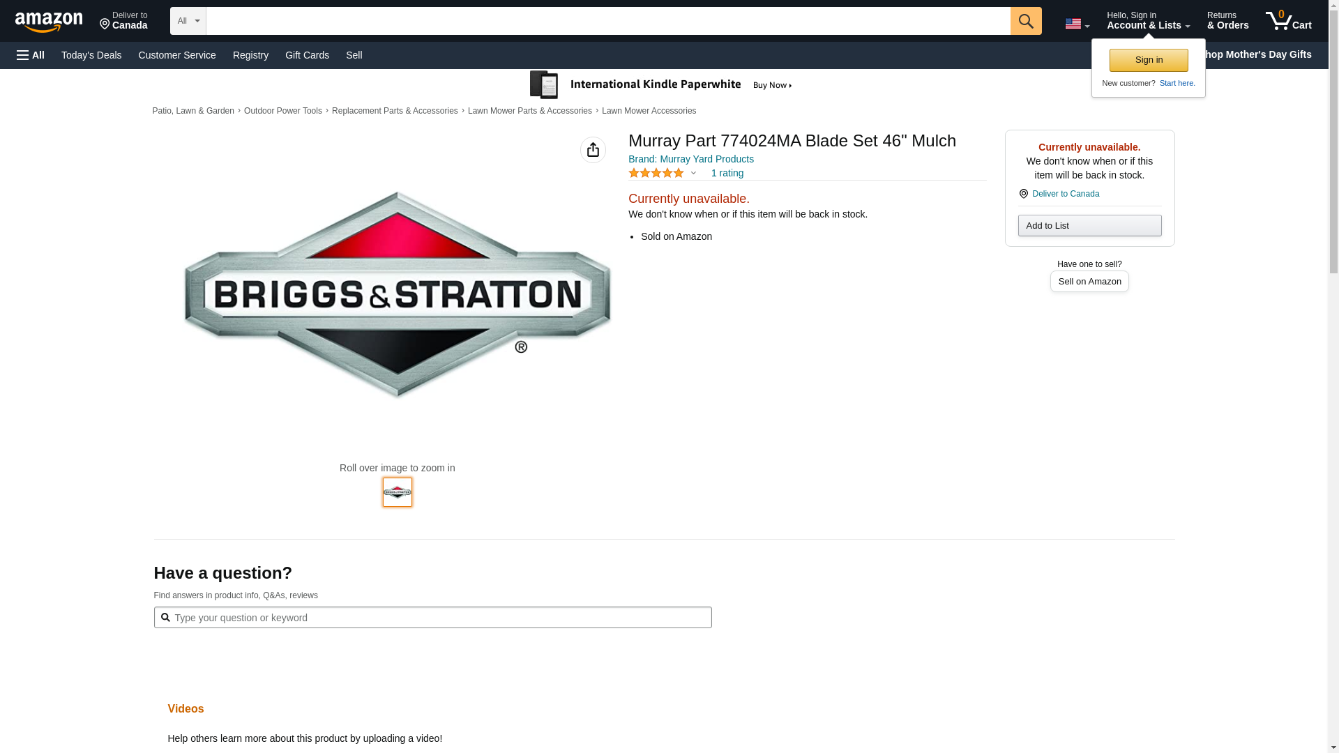 MURRAY 774024MA Part Blade Set 46" Mulch