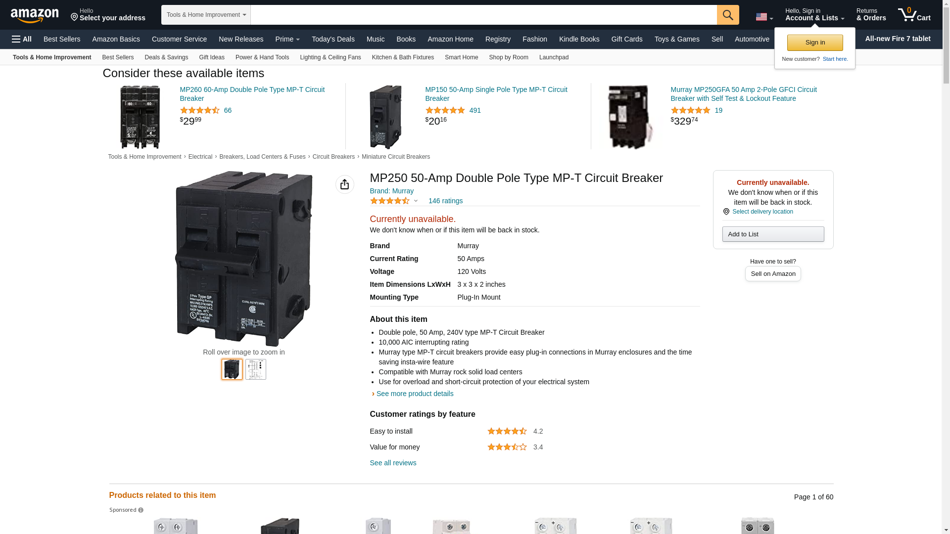 | Feature | Electrical Product Type: Breaker: Maximum Amperage (amps): 50 A |