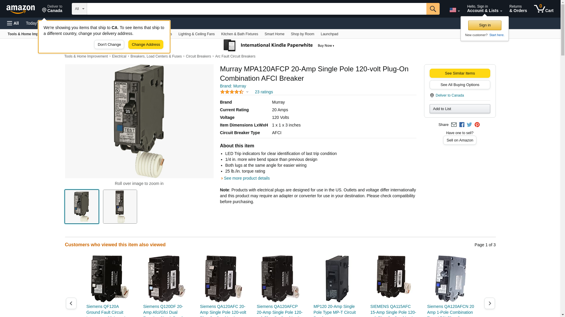 Murray MPA120AFCP 20-Amp Single Pole 120-volt Plug-On Combination AFCI Breaker. UL Listed AFCI Breaker. Combination T...