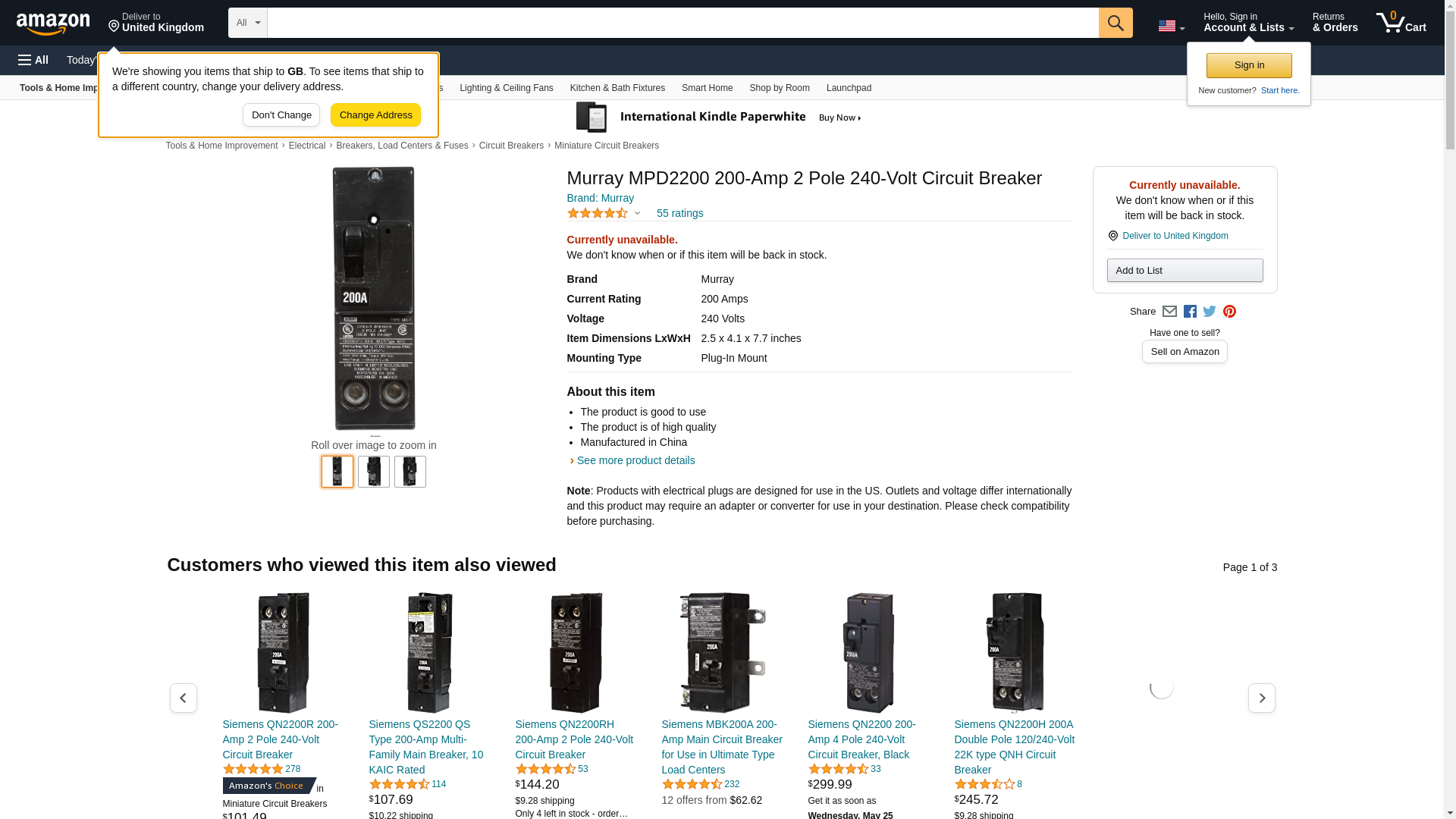| Feature | Murray MPD2200 200-Amp 2 Pole 240-Volt Circuit Breaker |