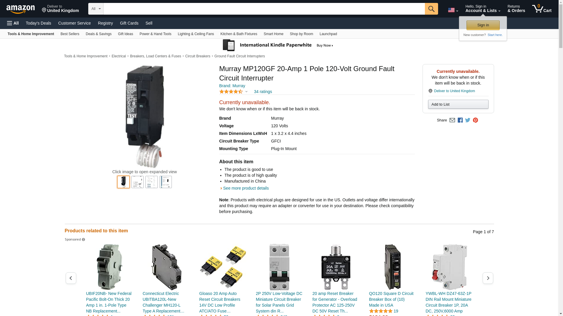 Murray MP120GF 20-Amp 1 Pole 120-Volt Ground Fault Circuit Interrupter. 20-Amp. 1 Pole. Plug in type. 1-Inch Frame. U...