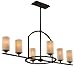 Chandelier Stems Included Qty & Size 4- 12" Stems / 1- 6" Stems Canopy 4.75"x10"Rect Product Length 44 Number of Bulbs 6 Qty of Fabric/Glass Shades 6 6 Bulb Heritage Bronze Chandelier Lamping 6- E 100 Watt Max Wattage 600 Max Height 74 Shade/Glass Bark Texture w/Amber etch Glass Chandelier Bulb Type Edison Product Dimensions H - 17" - 74" L - 44" W - 18.5" C - 4.75"x10"Rect Fixture Finish Heritage Bronze Designer Miranda Bulb Included No Safety Rating UL