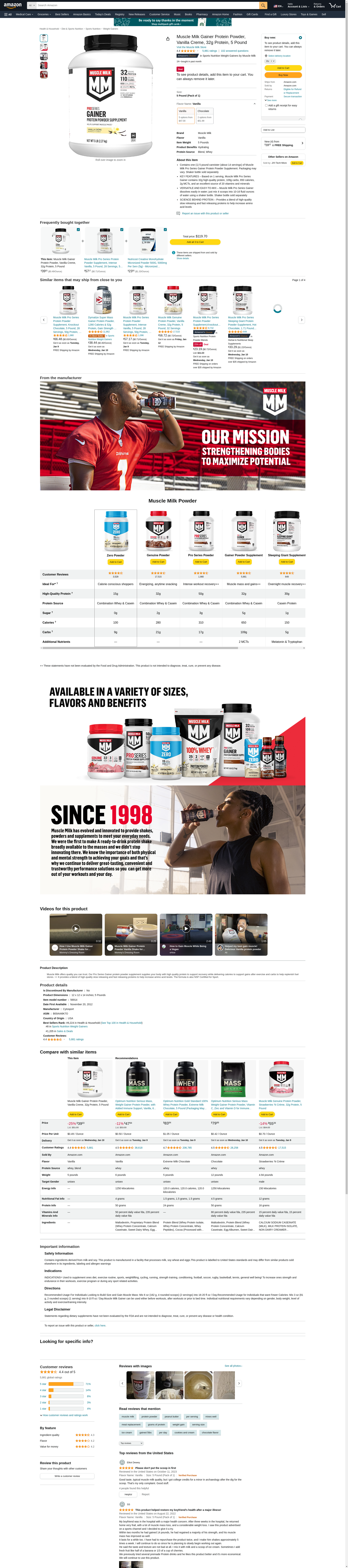 Muscle Milk Gainer Protein Powder, Vanilla Creme, 32g Protein, 5 Pound: Maxedbuy.com