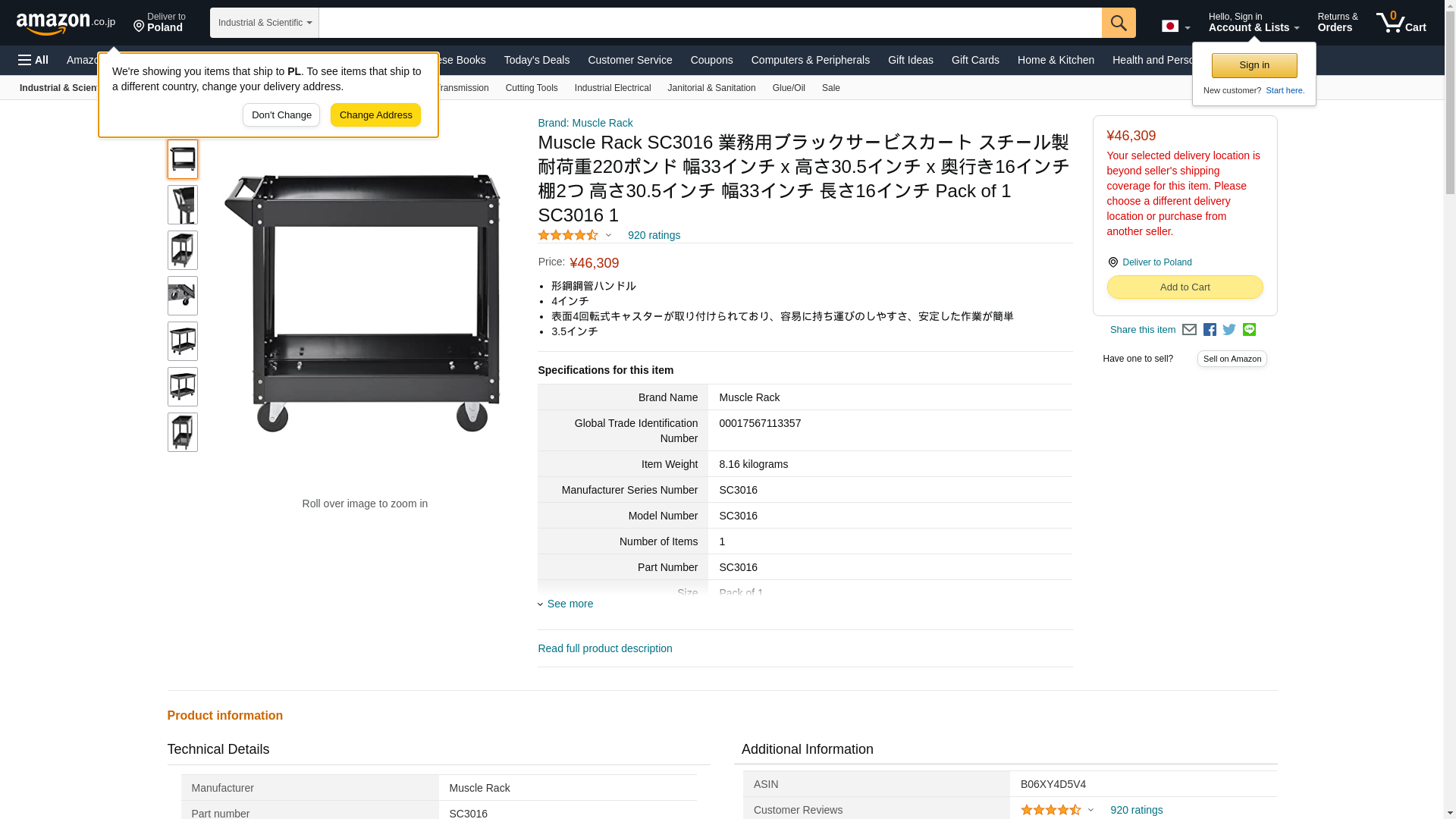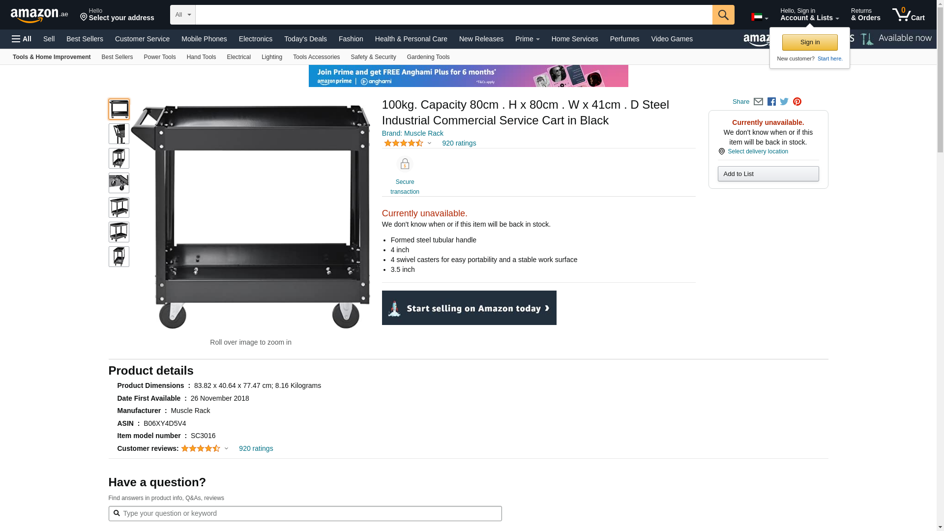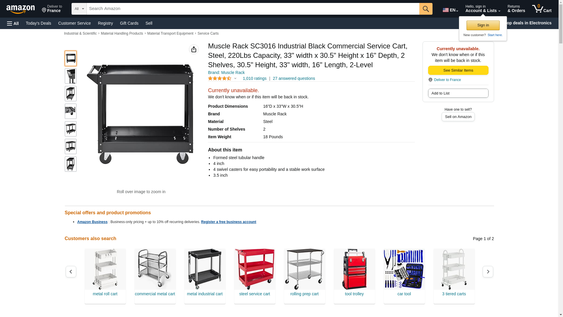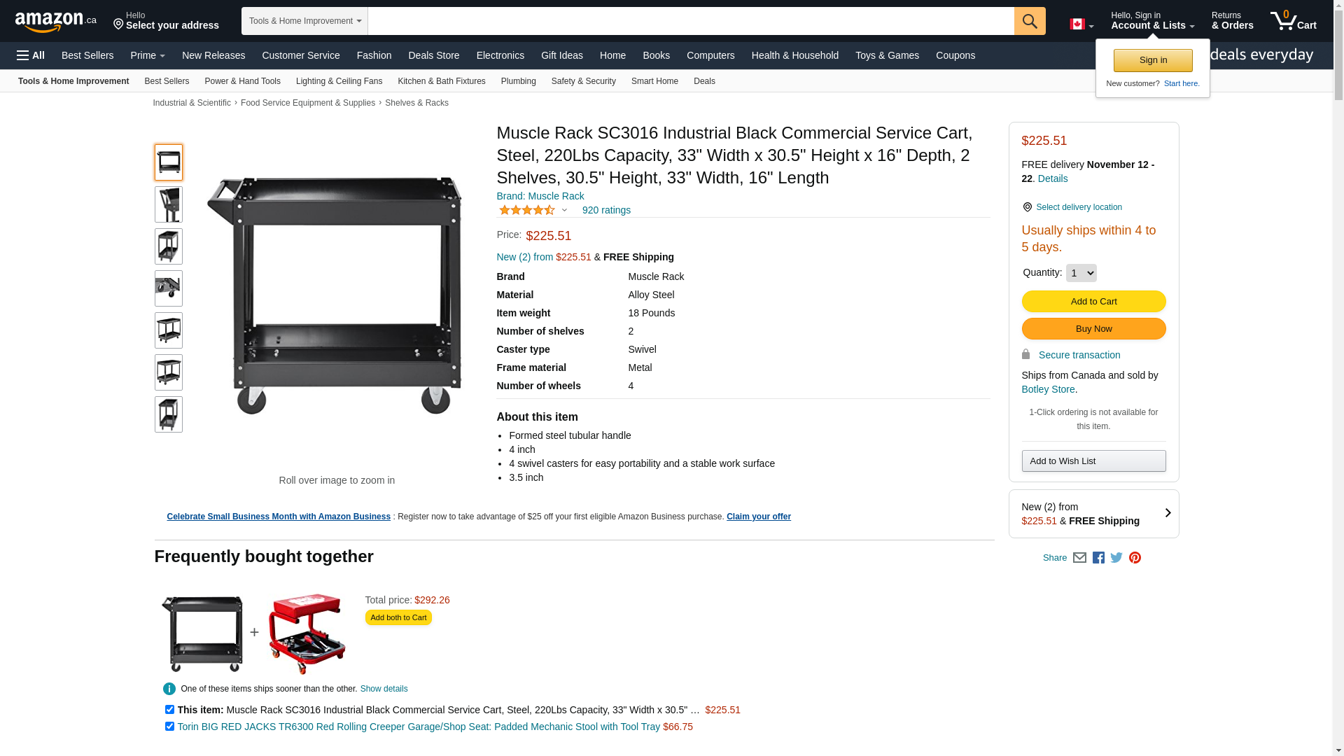 Muscle Rack SC3016 Industrial Black Commercial Service Cart, Steel, 220Lbs Capacity, 33" width x 30.5" Height x 16" Depth, 2 Shelves, 30.5" Height, 33" width, 16" Length, 2-Level