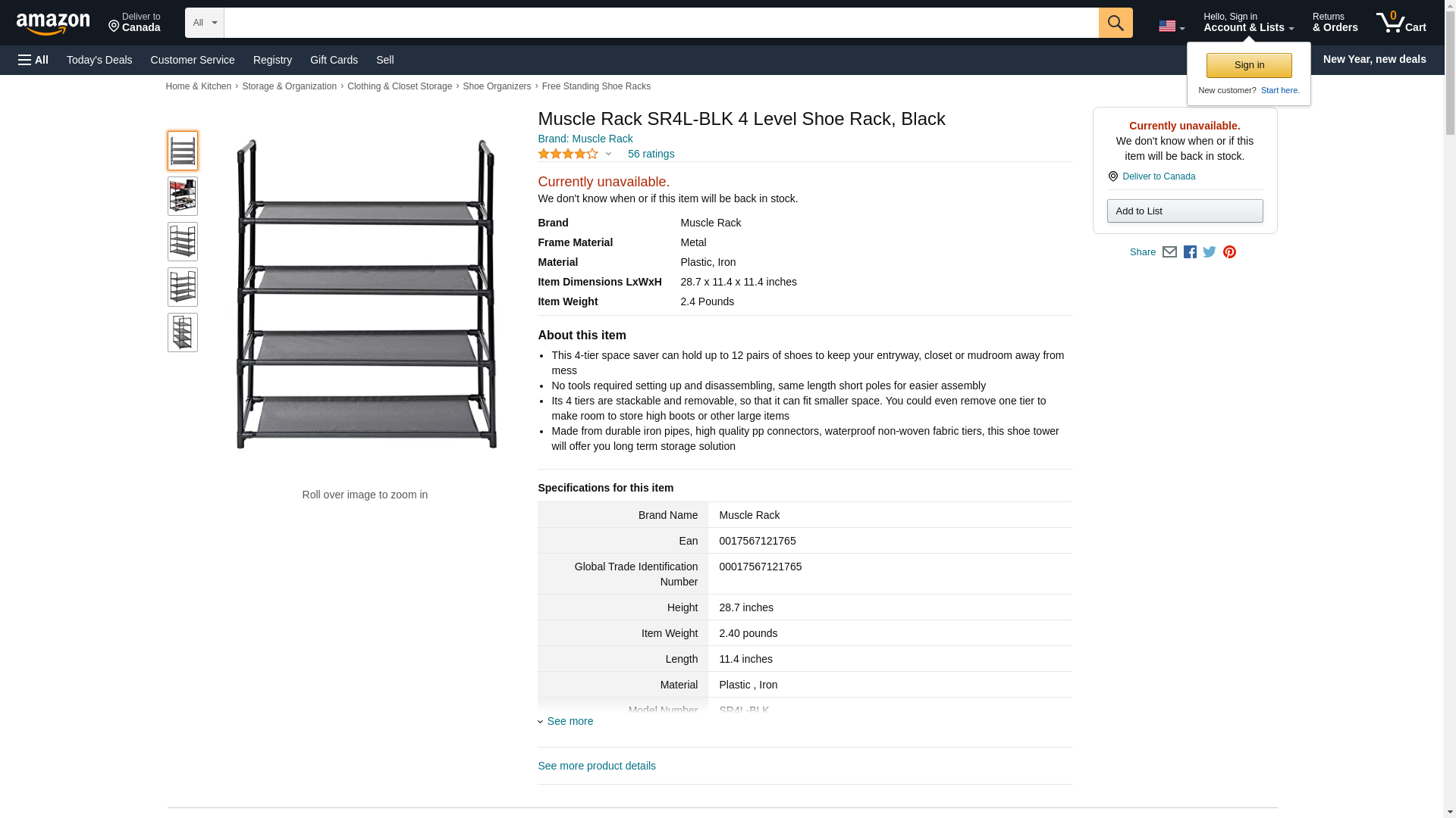 Muscle Rack SR4L-BLK 4 Level Shoe Rack, Black