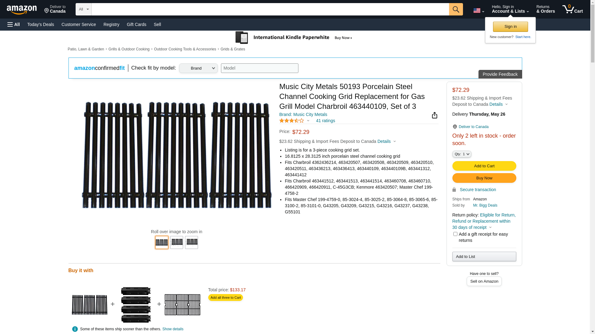 Music City Metals 50193 Porcelain Steel Channel Cooking Grid Replacement for Gas Grill Model Charbroil 463440109, Set of 3