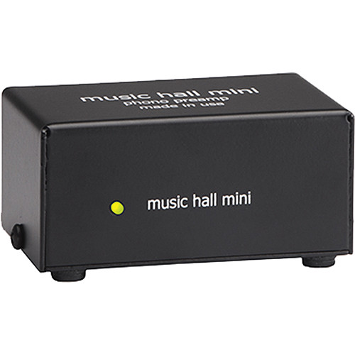 The Music Hall Mini is a solid state phono preamp for use with moving magnet and high output moving coil cartridges. The Mini is designed to amplify an RIAA equalized phono signal to a high level signal. It’s cheap, cheerful, and built in the USA. Use your Mini with electronic components that lack a built-in phono stage, such as receivers, preamps, and integrated amps. If you're just getting into vinyl or you're putting together a second or third hi-fi system for office, den, bedroom, or pantry, Mini will max you out with its quality and convenience. Mini gives you a pair of RCA inputs, one pair of RCA outputs, and a 3.5mm stereo mini output, too. The steel chassis contributes to the reliability, durability, and all-around awesomeness.