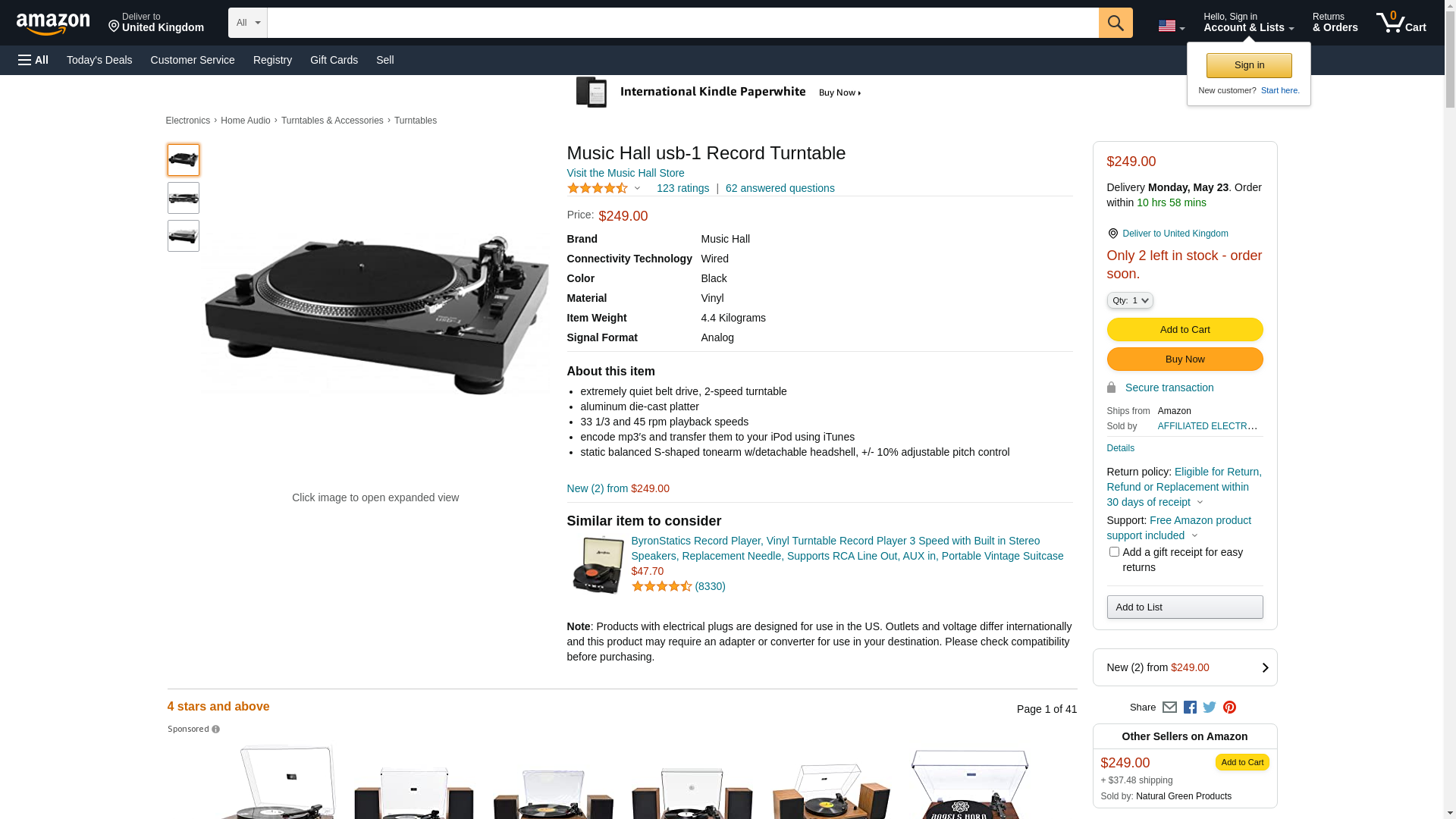 Music Hall USB-1 Turntable with Cartridge and USB Output OPEN BOX