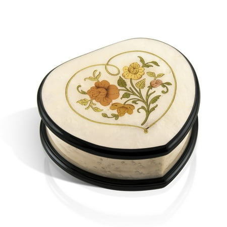 Exclusive 30 Note Ivory Stain Heart Shaped Floral Inlay Music Jewelry Box - Dance with My Father Again