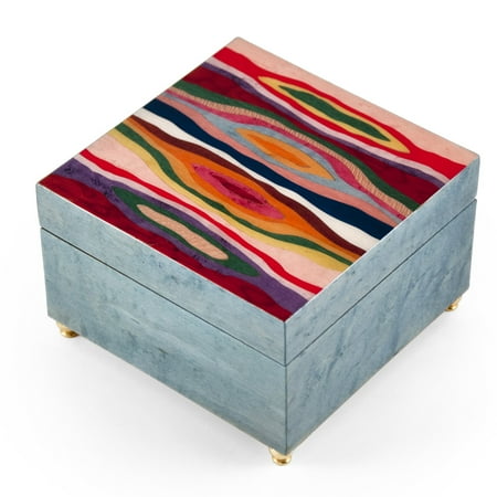 Artistic Light Blue Modern 'Abstract Expressionism' Musical Jewelry Box - Moonlight Serenade