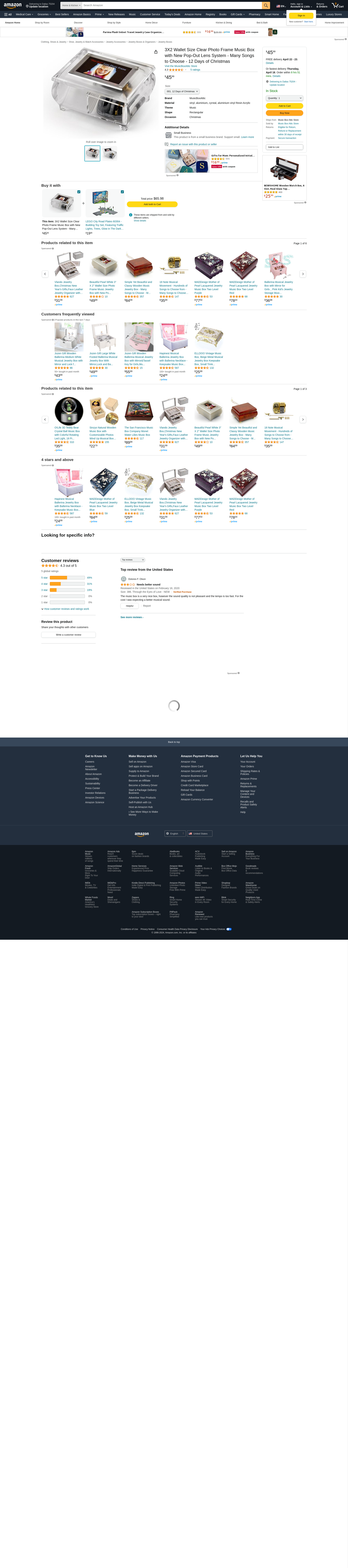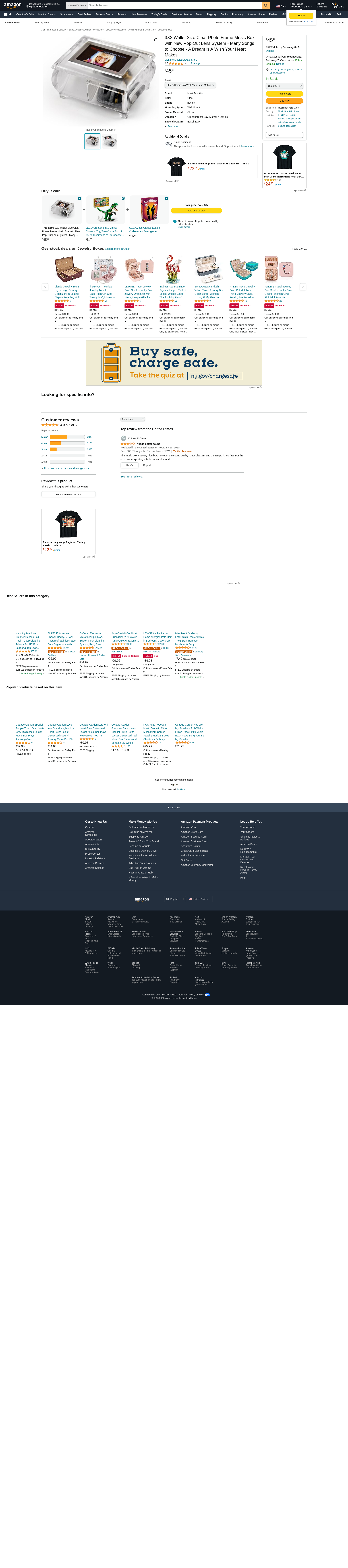 | Feature | PERSONALIZED MUSIC PHOTO FRAME: This musical transparent jewelry organizer box has a high quality 18 note movement. Please choose your favorite song from 454 available song titles. |