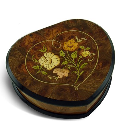 Simply Elegant and Expressive 22 Note Heart Shaped Floral Wood Inlay Musical Jewelry Box - 12 Days of Christmas