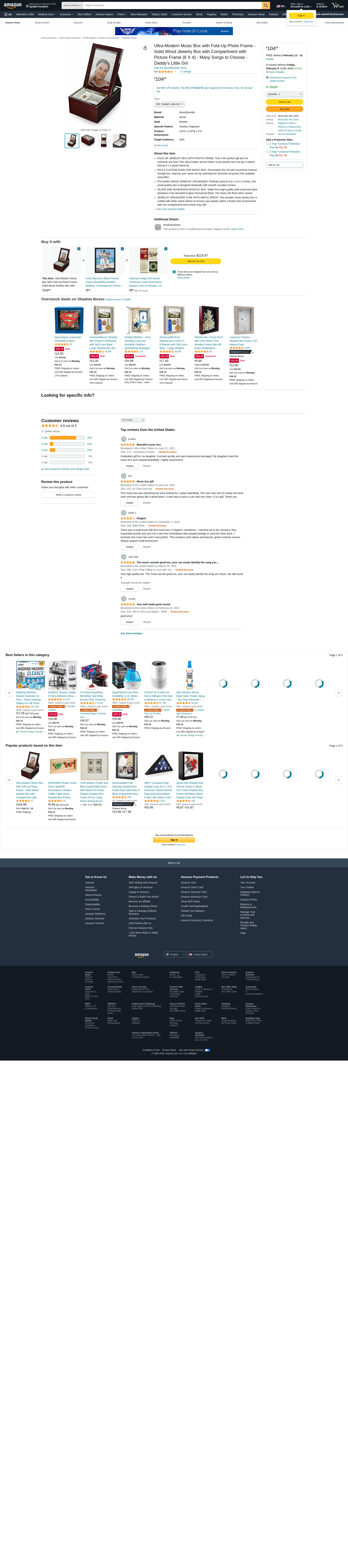 Ultra-Modern 6 X 4 Fold-Up Photo Frame with Music 454 Song Choices - Solid Wood Musical Box for Decoration- Jewelry organizer with small compartments for rings & other jewelry, Gifts for Her